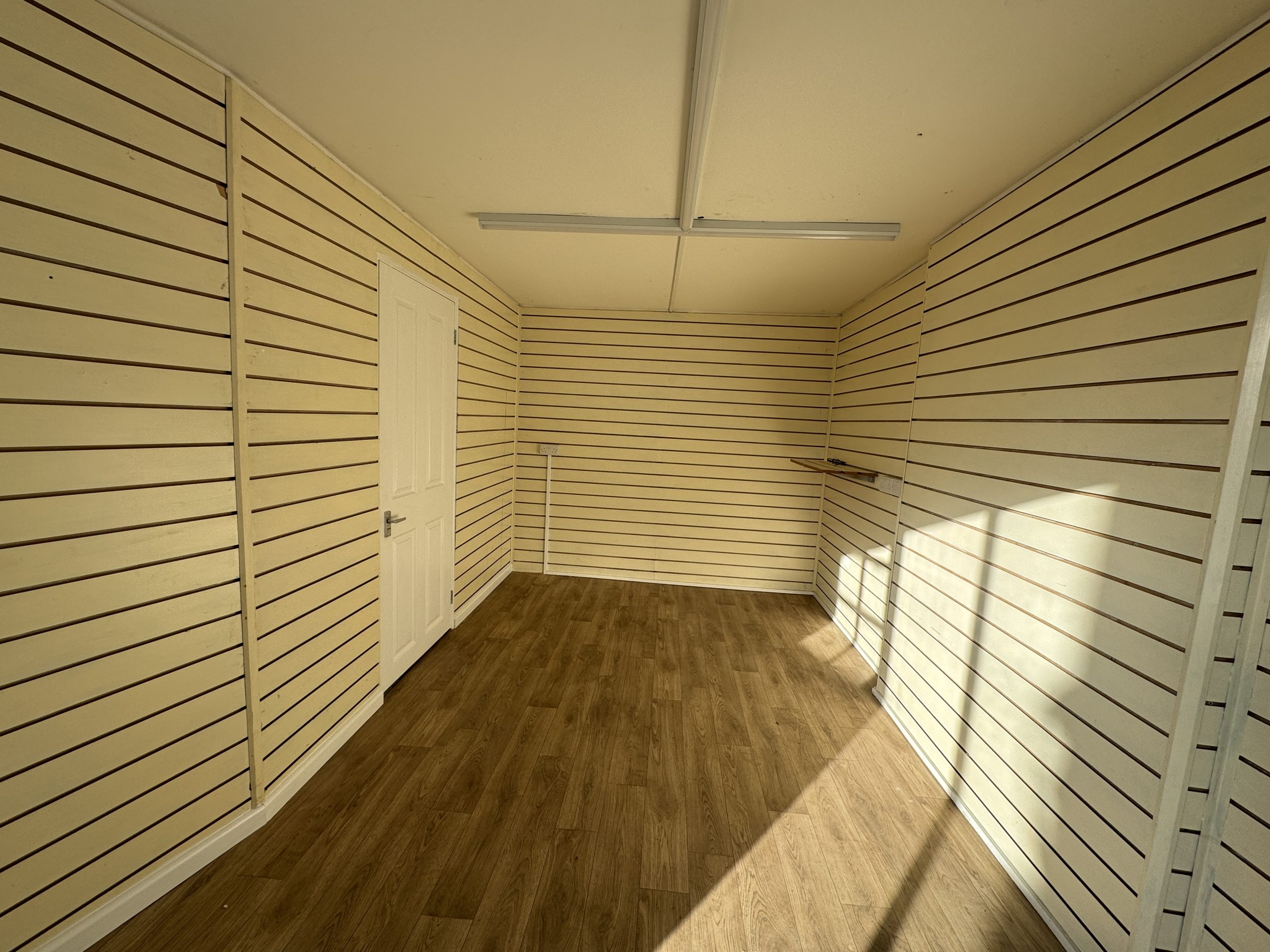 This commercial unit has a large glazed window to the front with the front room measuring 14'7 x 7'9 with vinyl flooring, boarded walls, door to inner hall. Hallway with flagstone floor and cupboard and door to the rear area, with plastic roofing, concrete flooring, 2xWC's and gate to the road.