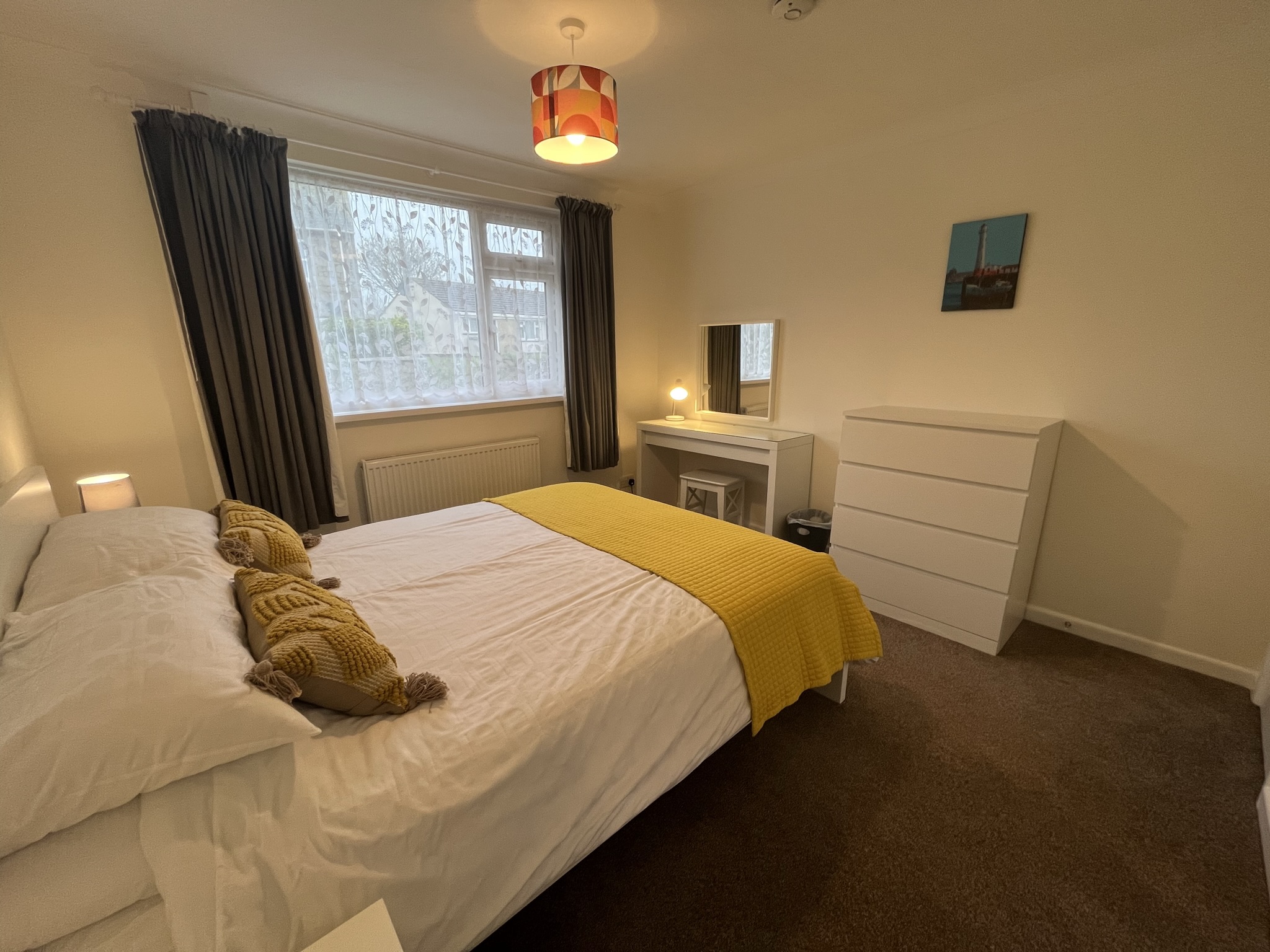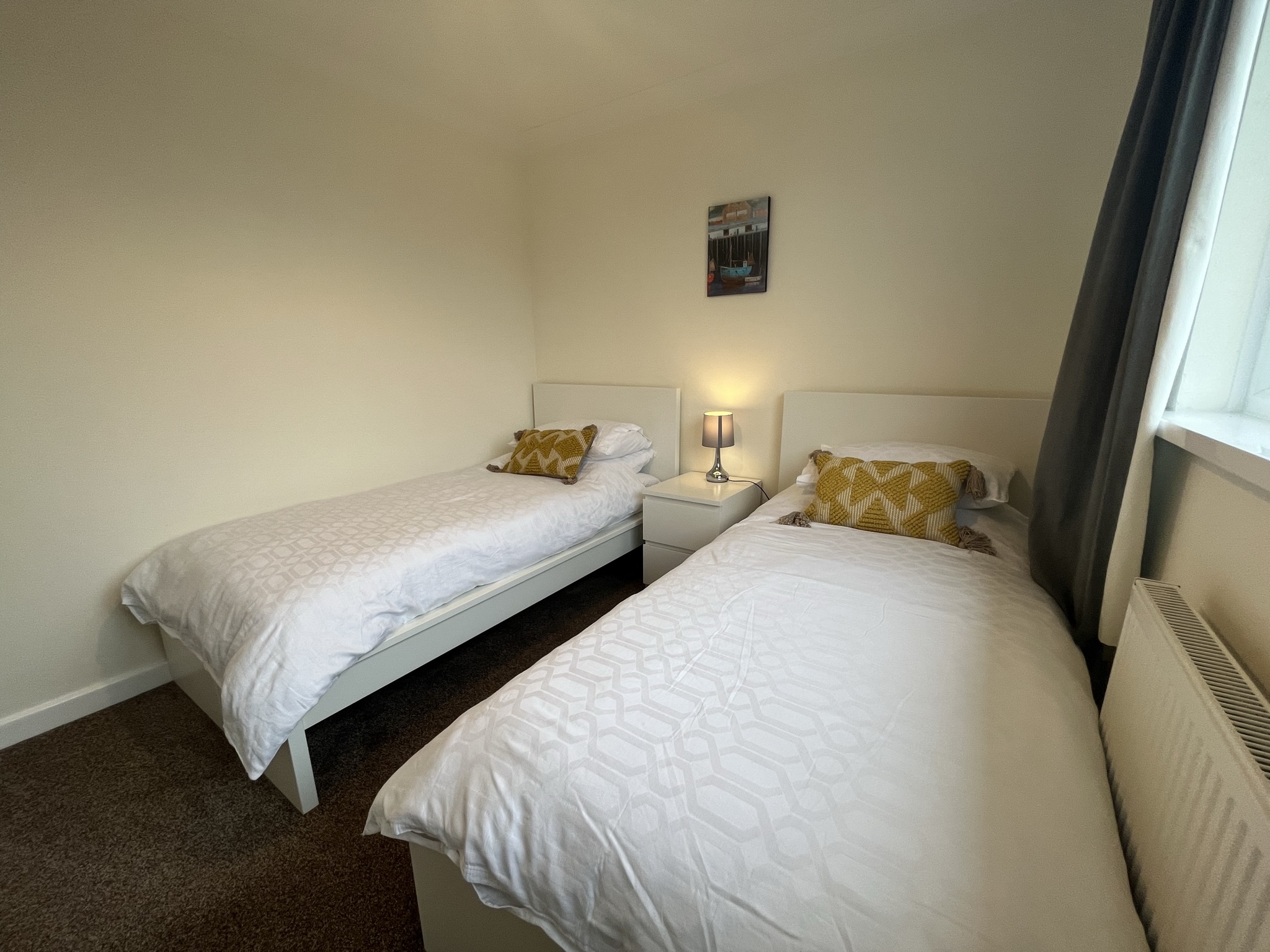 Carpeted, central heating radiator and double glazing
