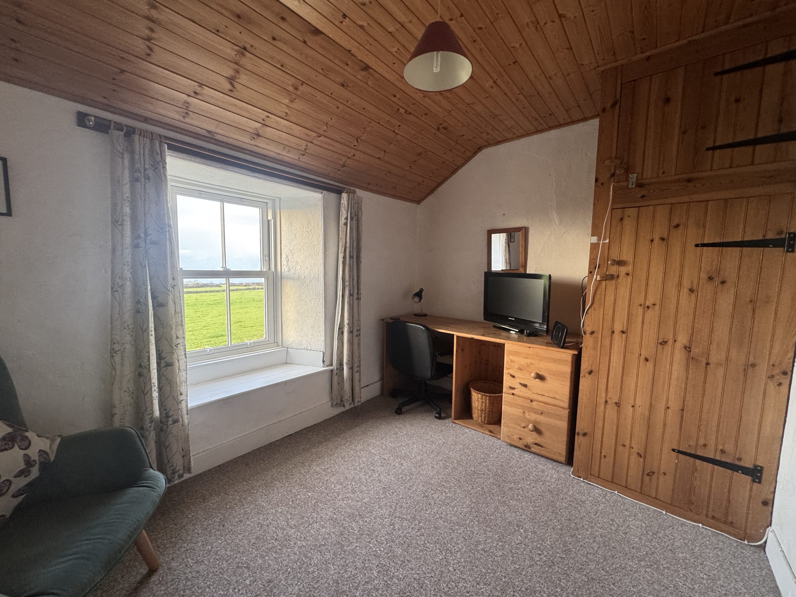 Double glazed window, pendant light, carpeted, fitted cupboard