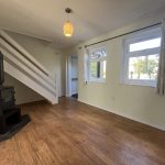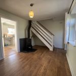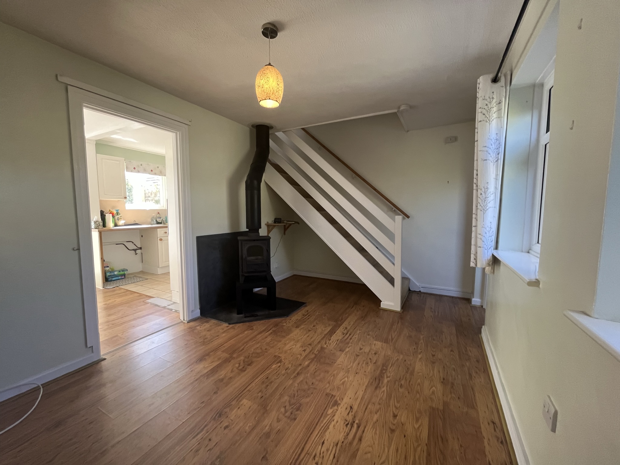 Laminate flooring, double glazed windows, pendant light and wood burning stove.